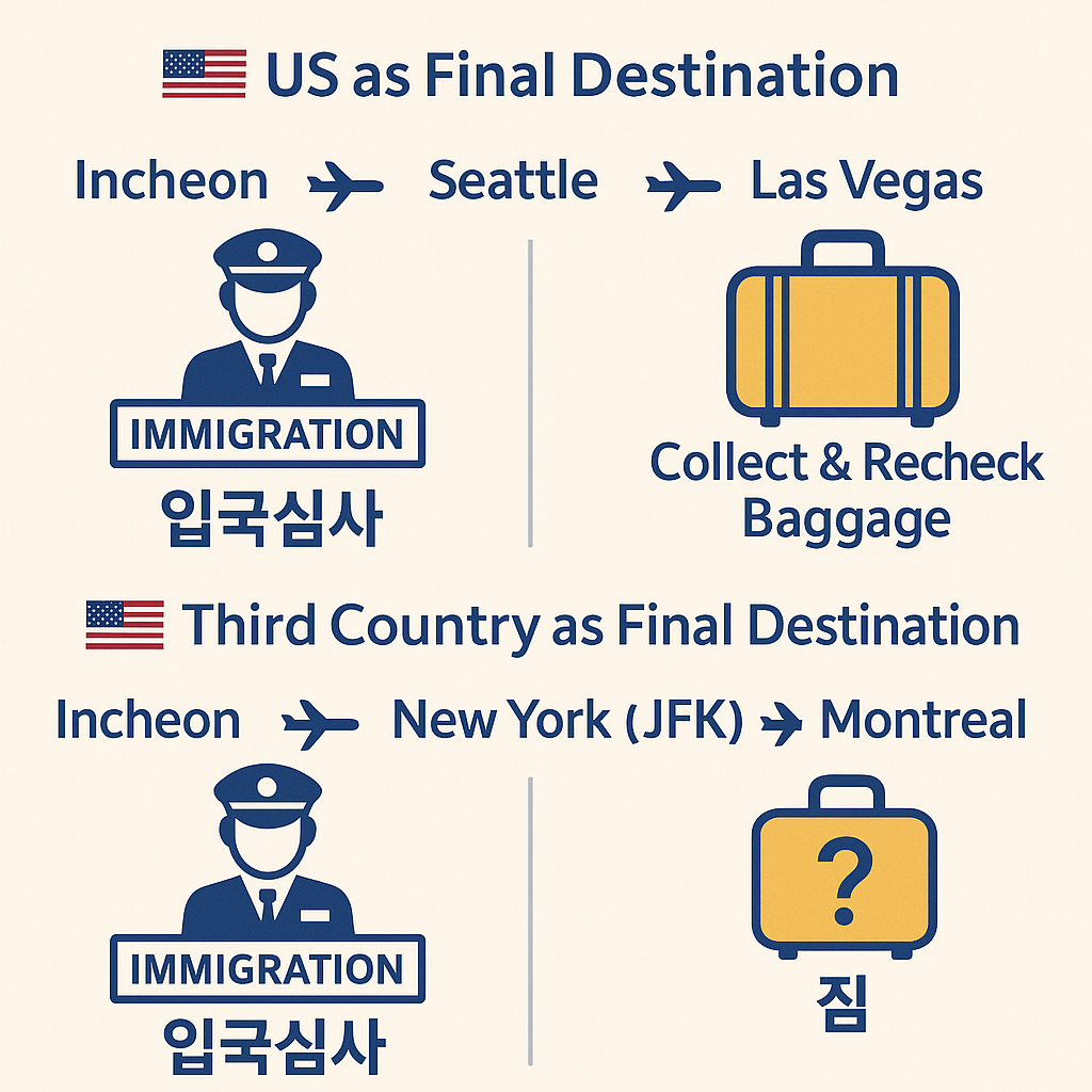 ✈️ 미국 경유 시 꼭 알아야 할 입국심사 및 수하물 처리 안내 (미국 도착 vs 제3국 경유)