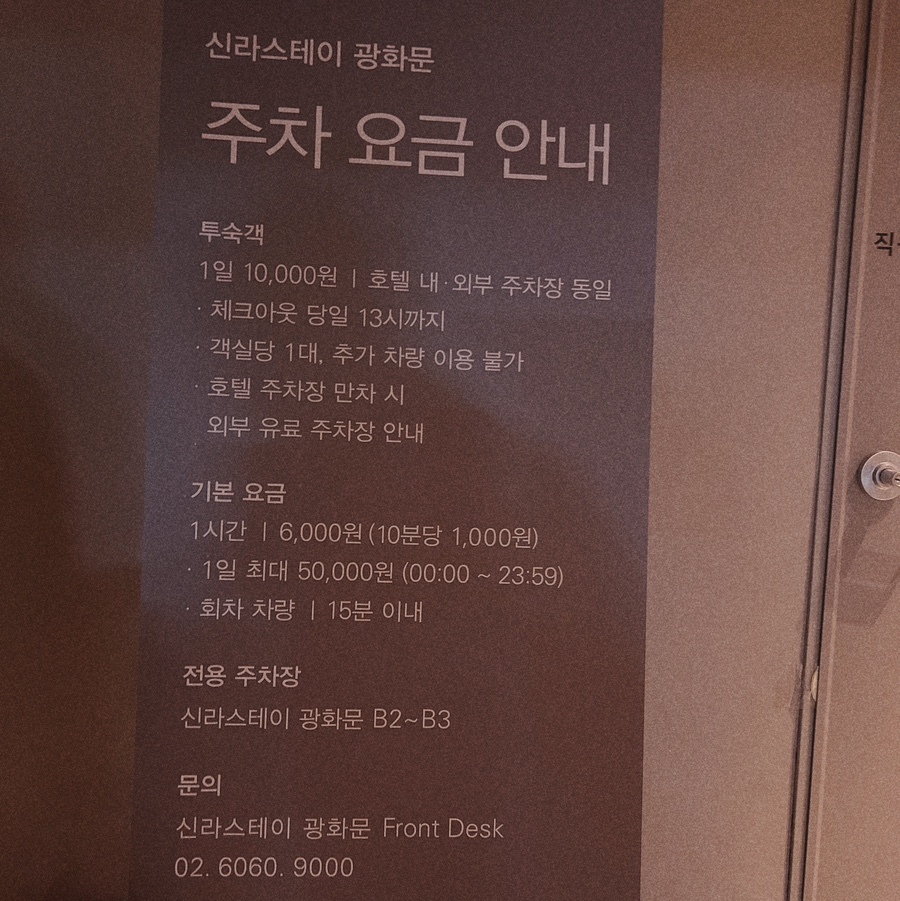 광화문이라 그런지 주차가 좀 어렵더라구요! 저도 체크인 7시쯤 했는데 겨우 한자리 나서 했습니다!